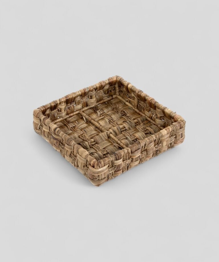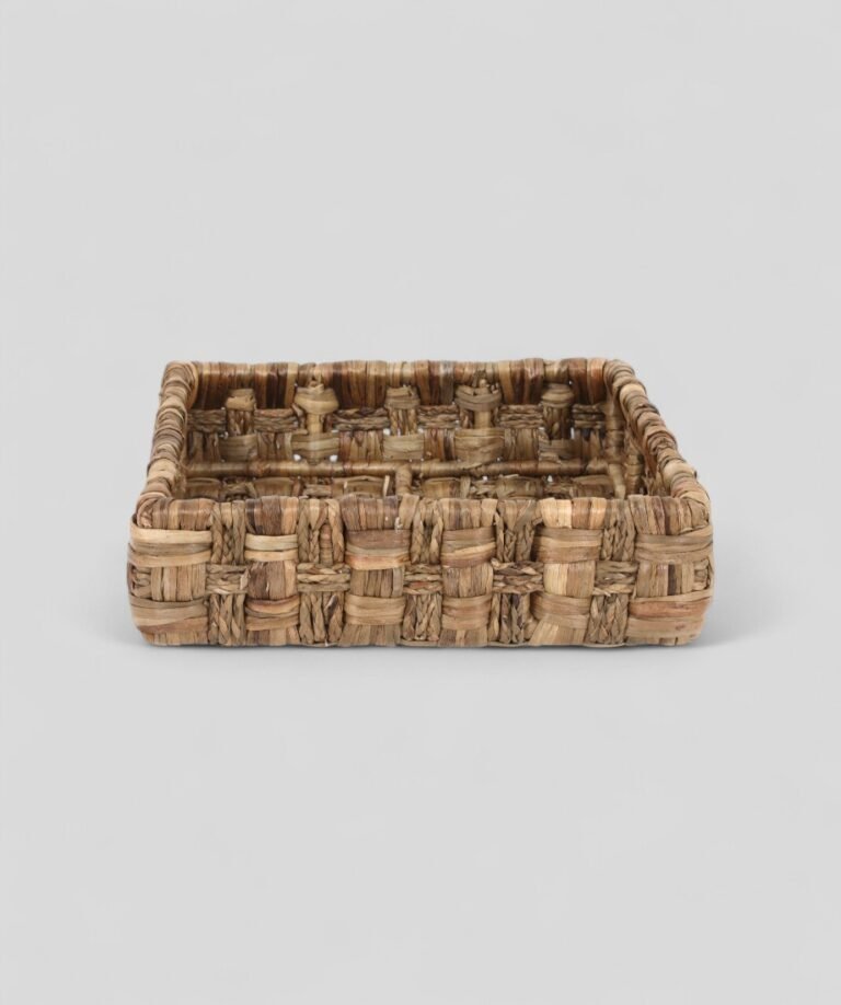 Handcrafted from sustainably harvested water hyacinth, this square basket combines natural beauty with everyday functionality. Its thick woven texture and warm, earthy tones bring charm to your home décor.