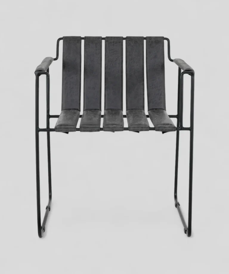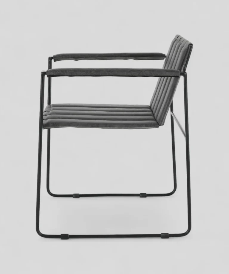 Blending industrial strength with modern elegance, this chair is designed to stand out while providing lasting comfort. The sturdy iron base is expertly crafted with a slim, open-frame design, giving it a lightweight yet durable structure that can easily complement contemporary, industrial, or minimalist interiors. The seat and backrest feature vertically stitched panels upholstered in premium PU fabric, delivering a soft, leather-like feel that is easy to clean and maintain.