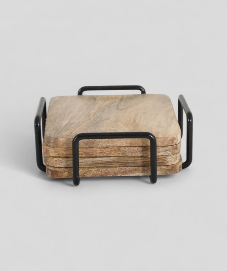 Be the first to review “Wooden Coaster Set of 4 with Black Stand”